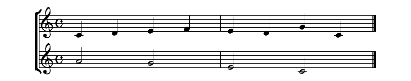 Let's add another staff to this beautiful piece, playing on MIDI program 41, which would select something like a violin: